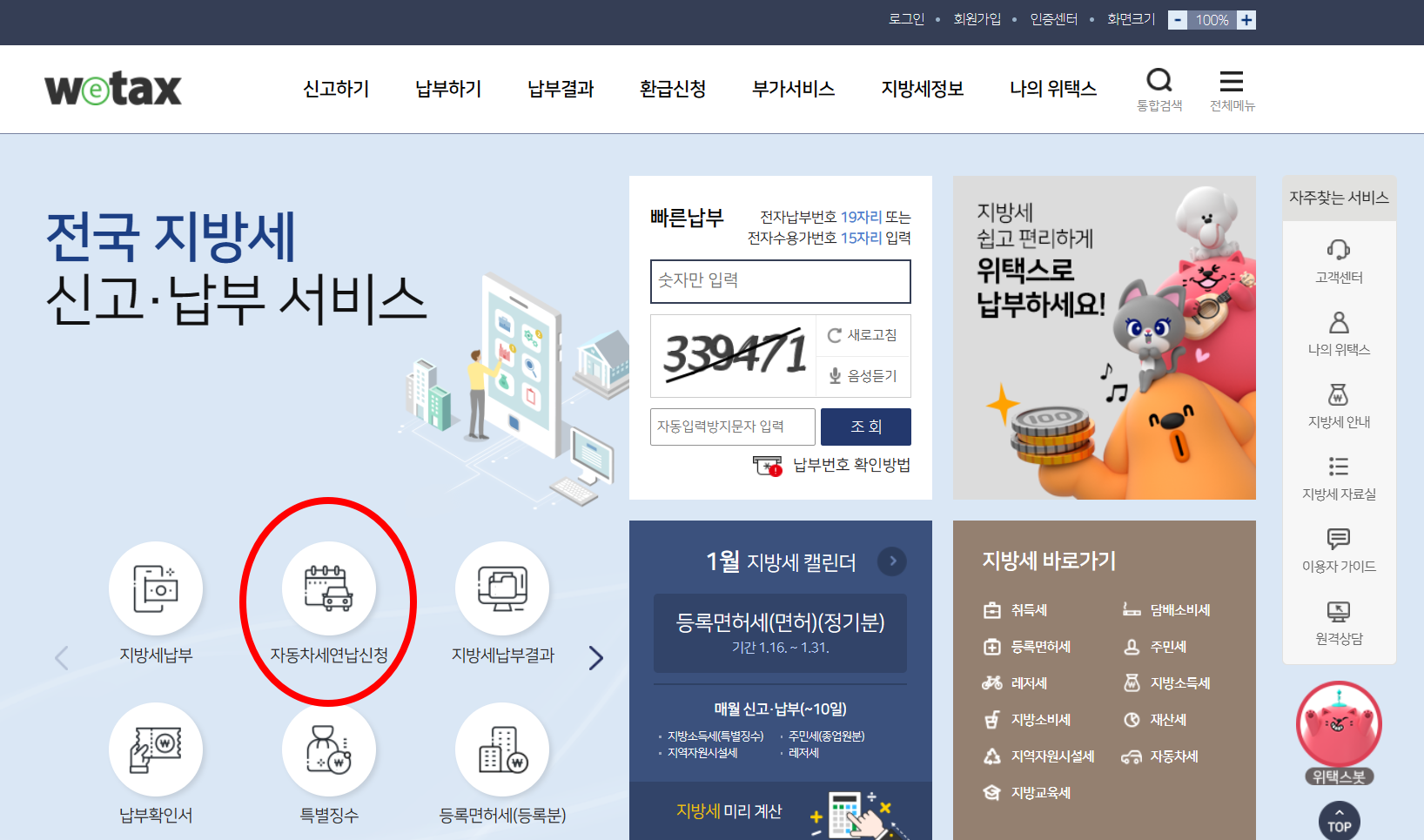1. 위택스 홈페이지 들어가기